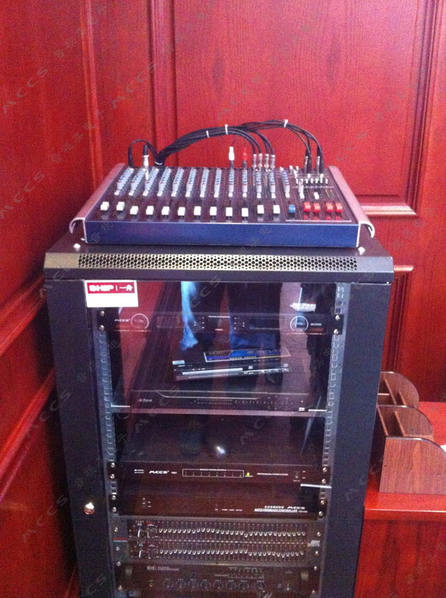 項目概況: 朔州萬鑫房地產(chǎn)有限公司會議室項目。 項目詳情: 該項目使用了MCCS(音視美)多個設備。包括:無線觸摸屏控制界面、多媒體中央控制系統(tǒng)、矩陣切換系統(tǒng)、液晶顯示器升降器、功放、音響、均衡器、調(diào)音臺等音響擴聲設備。 (1)中央控制系統(tǒng)