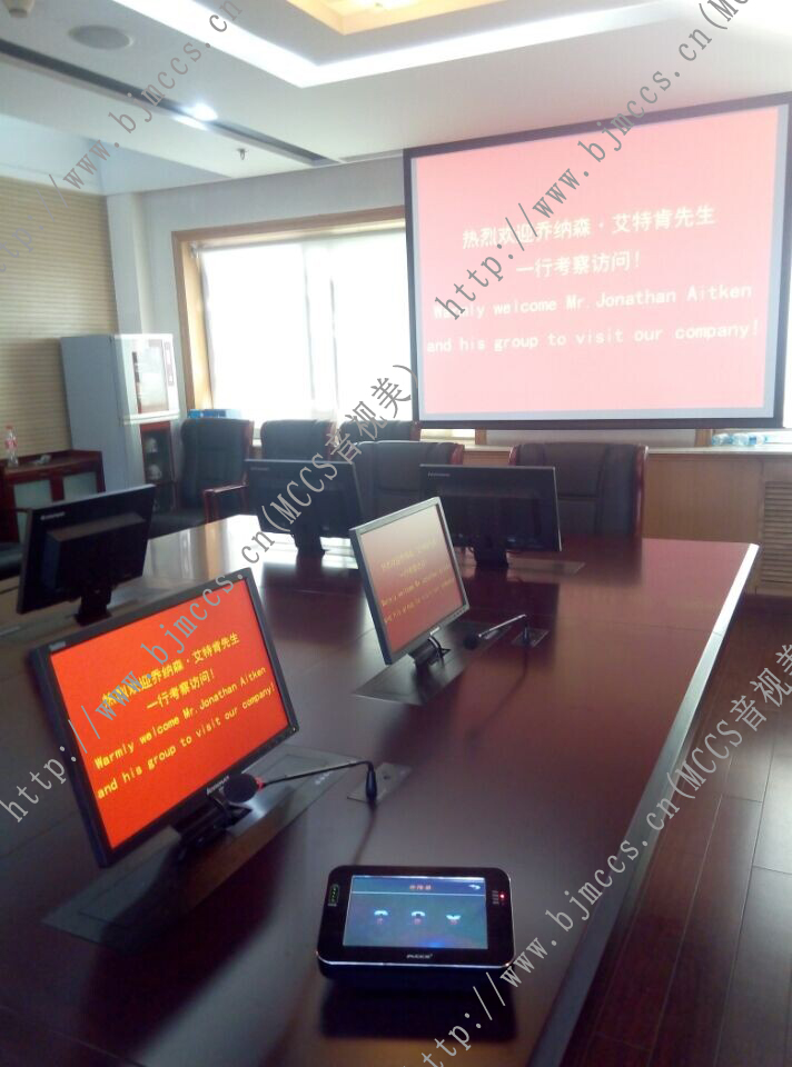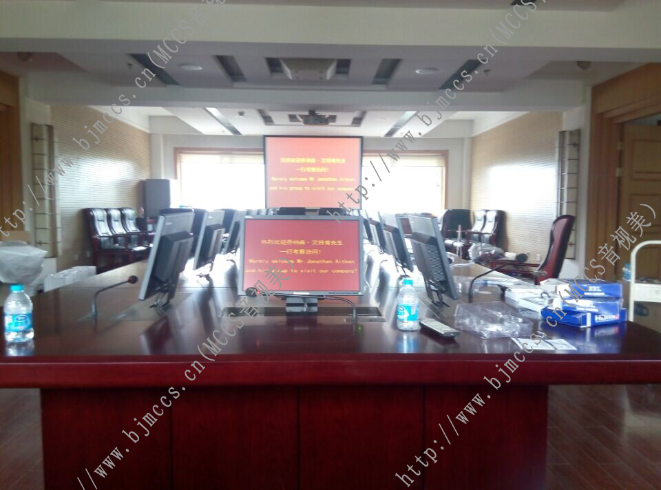 該項(xiàng)目使用了MCCS(音視美)多個(gè)設(shè)備。包括:無(wú)線觸摸屏控制界面、多媒體中央控制系統(tǒng)、矩陣切換系統(tǒng)、液晶顯示器升降器、手拉手會(huì)議系統(tǒng)。