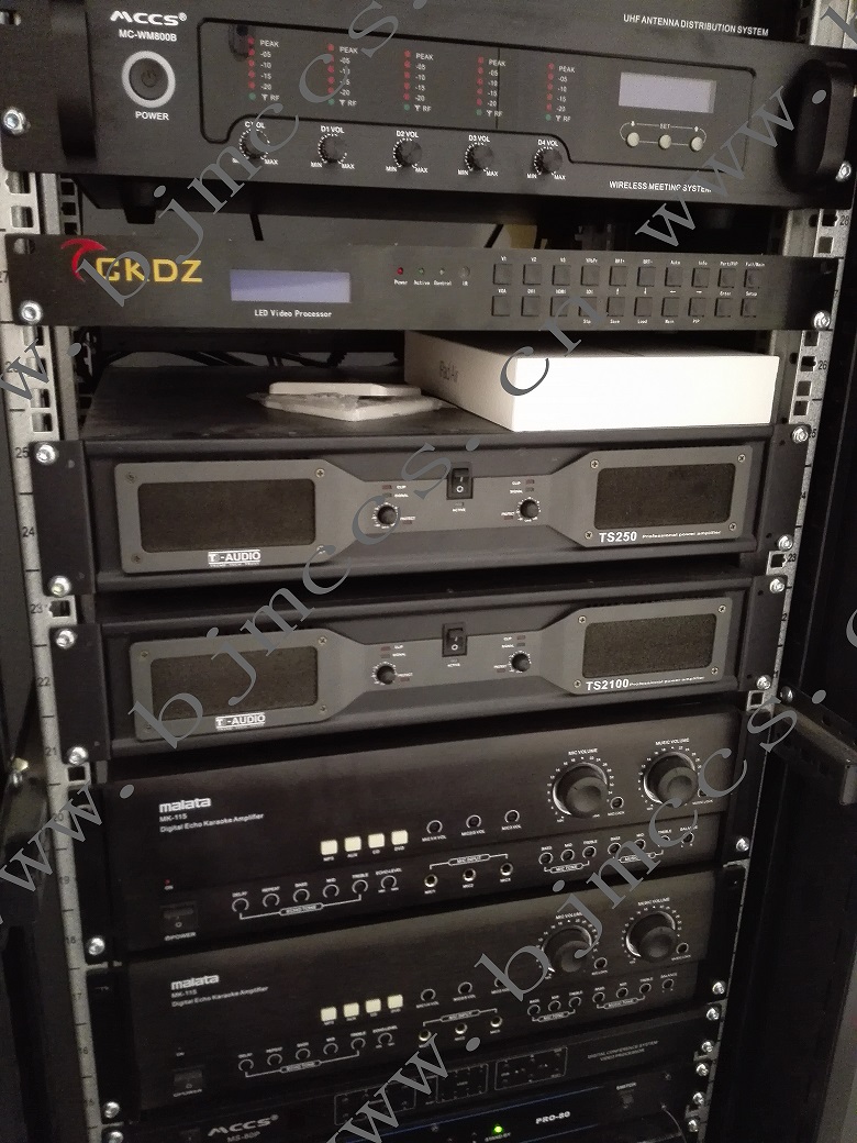 該項目使用了MCCS(音視美)多個設備。包括:無線觸摸屏控制界面、多媒體中央控制系統(tǒng)、無線手拉手會議跟蹤系統(tǒng)。